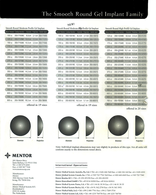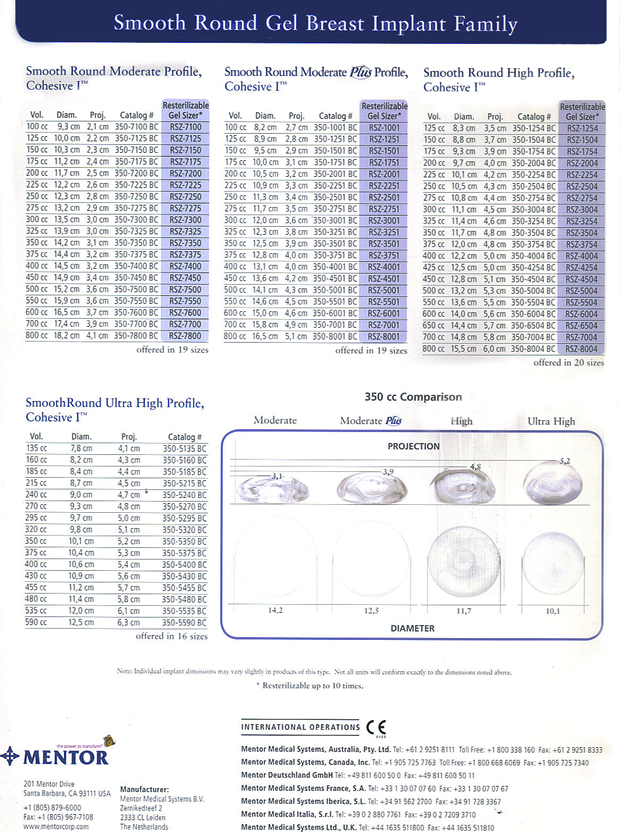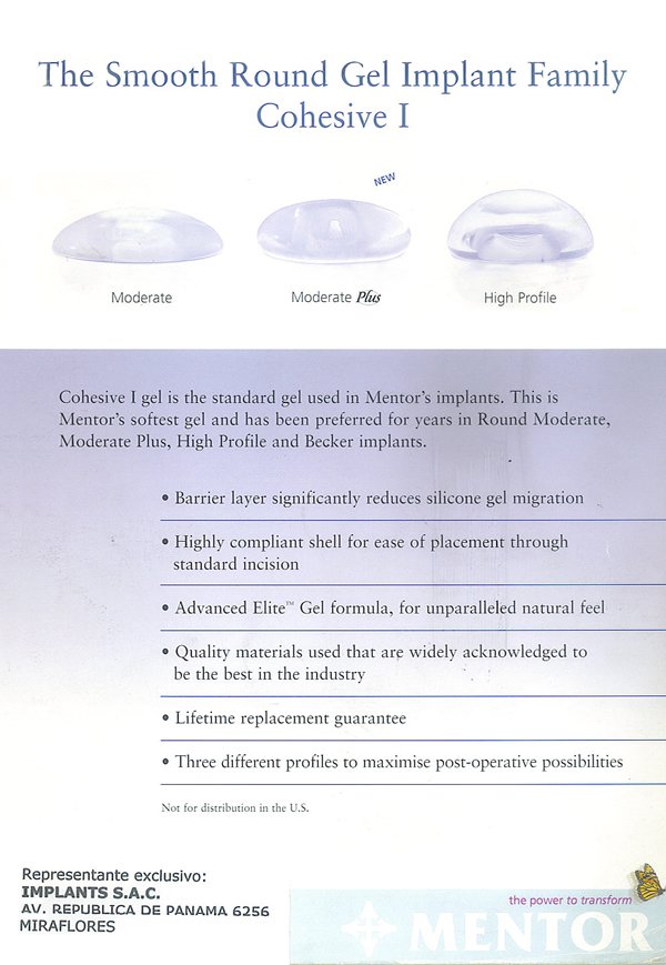 Nosotros trabajamos de preferencia con Mentor que tiene sus prótesis de superficie lisa y de varios perfiles. (Modelos de Protesis)