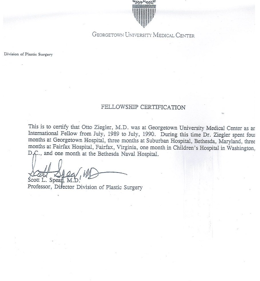 El Hospital universitario de Georgetown, creo el Programa de Residentado de Cirugía Plástica de la Capital Nacional incluyendo varios Hospitales del área metropolitana de Washington DC.