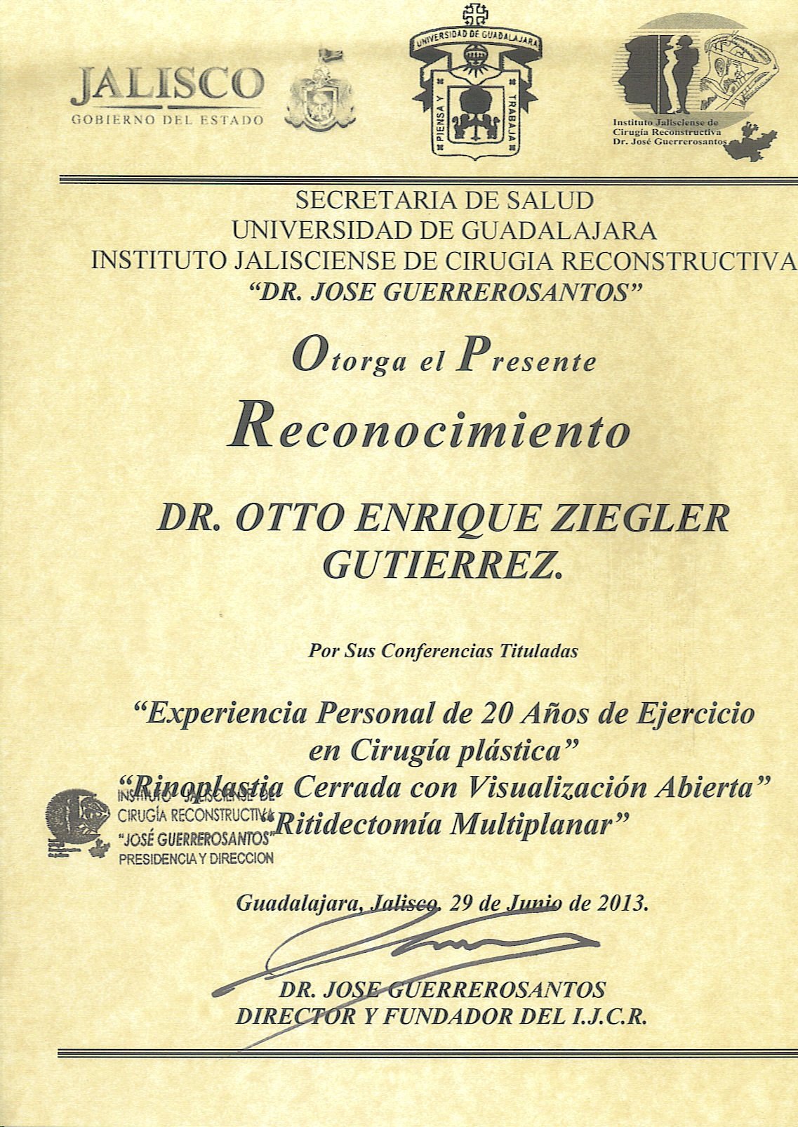 Experiencia Personal de 20 Años de Ejercicio en Cirugia Plástica (Instituto Jalisciense de Cirugia Reconstructiva 2013)