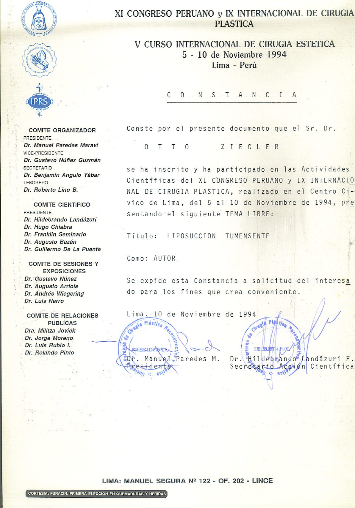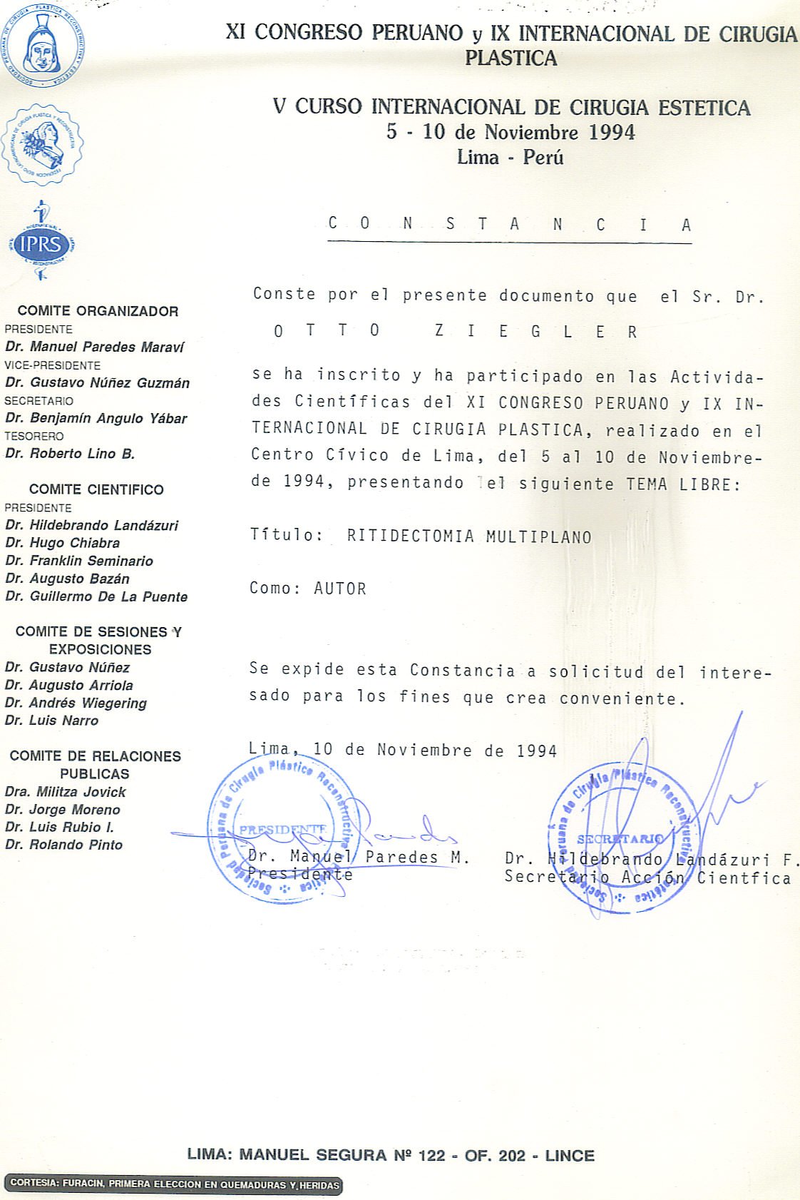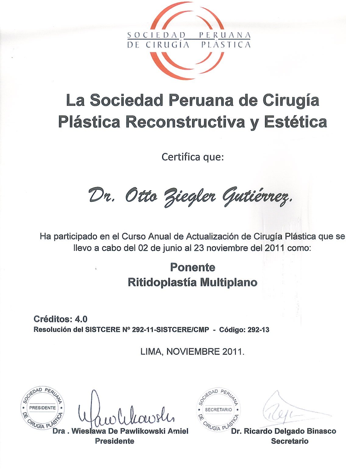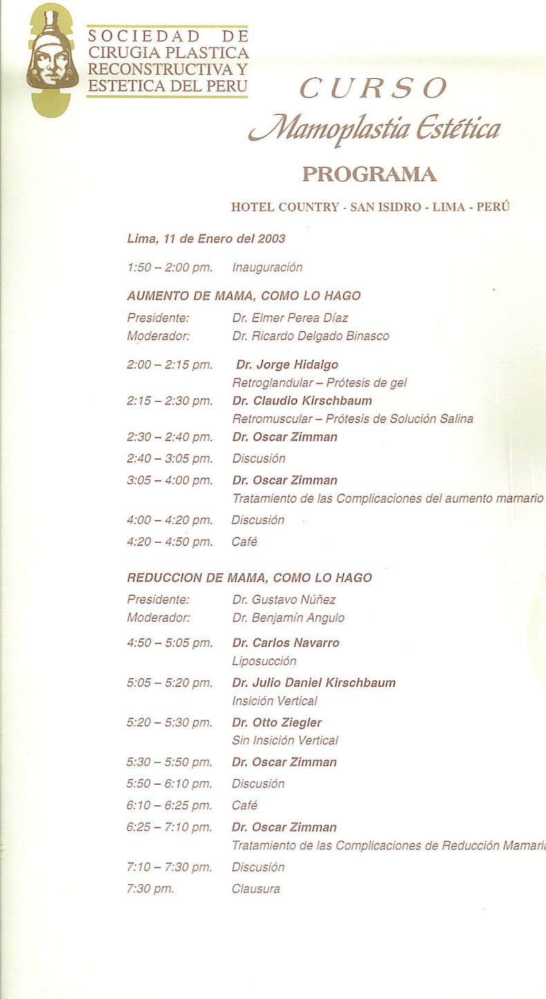 Experiencia de mas de 25 años como Cirujano Plástico. (Curso SPCPE)