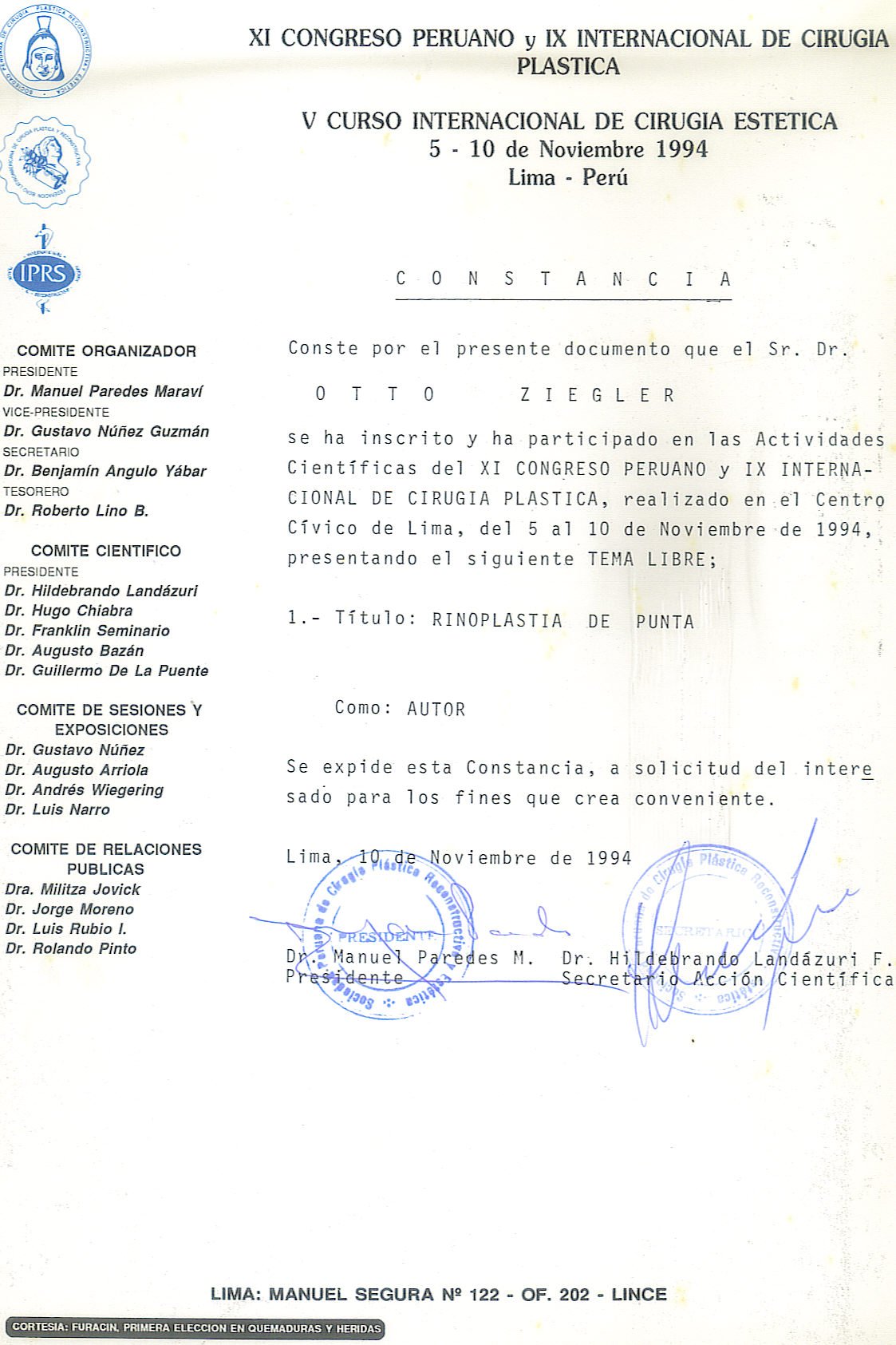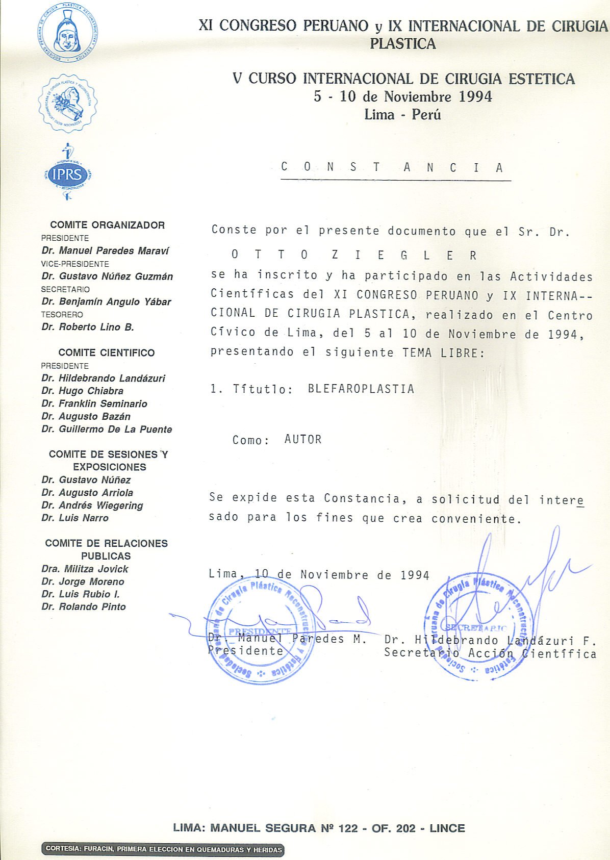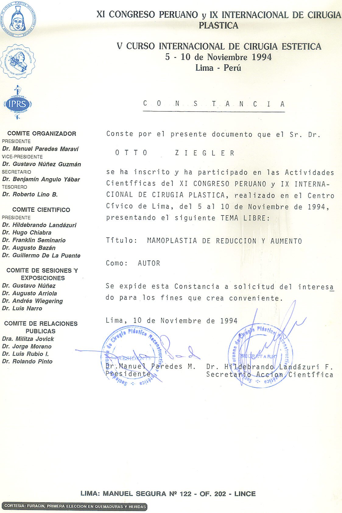 Experiencia de mas de 25 años como Cirujano Plástico. (Curso SPCPE)