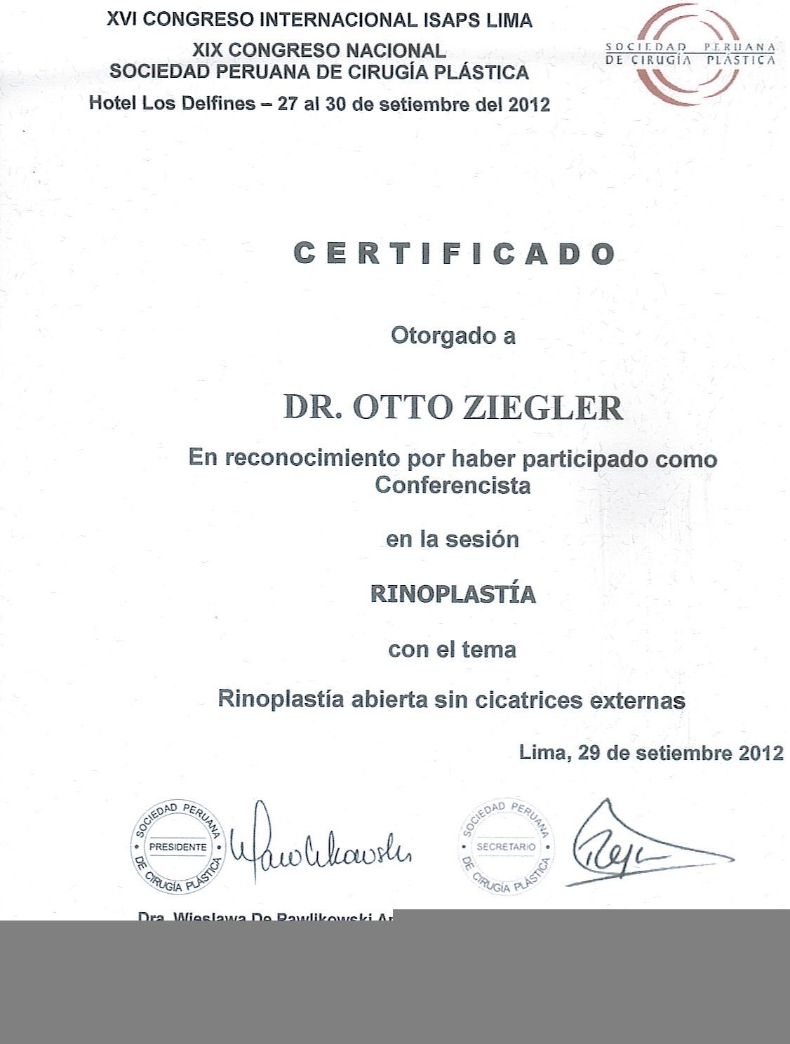 Rinoplastia Cerrada con Visualización Abierta (2012 - Congreso ISAPS)