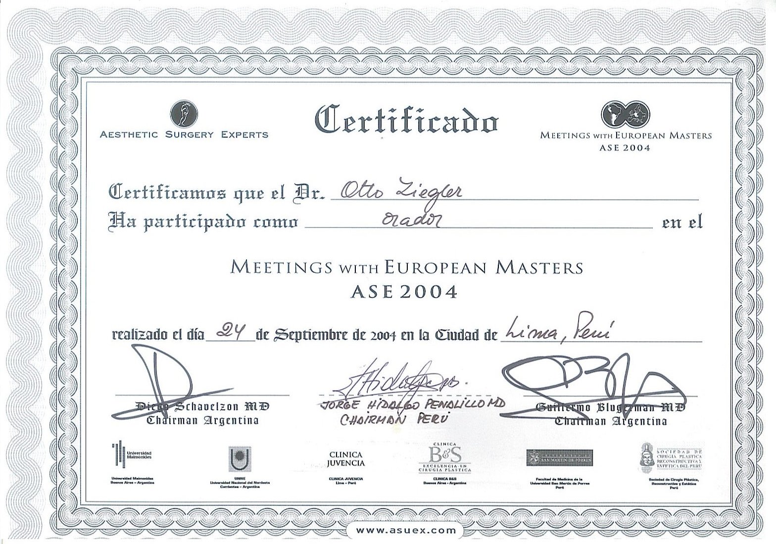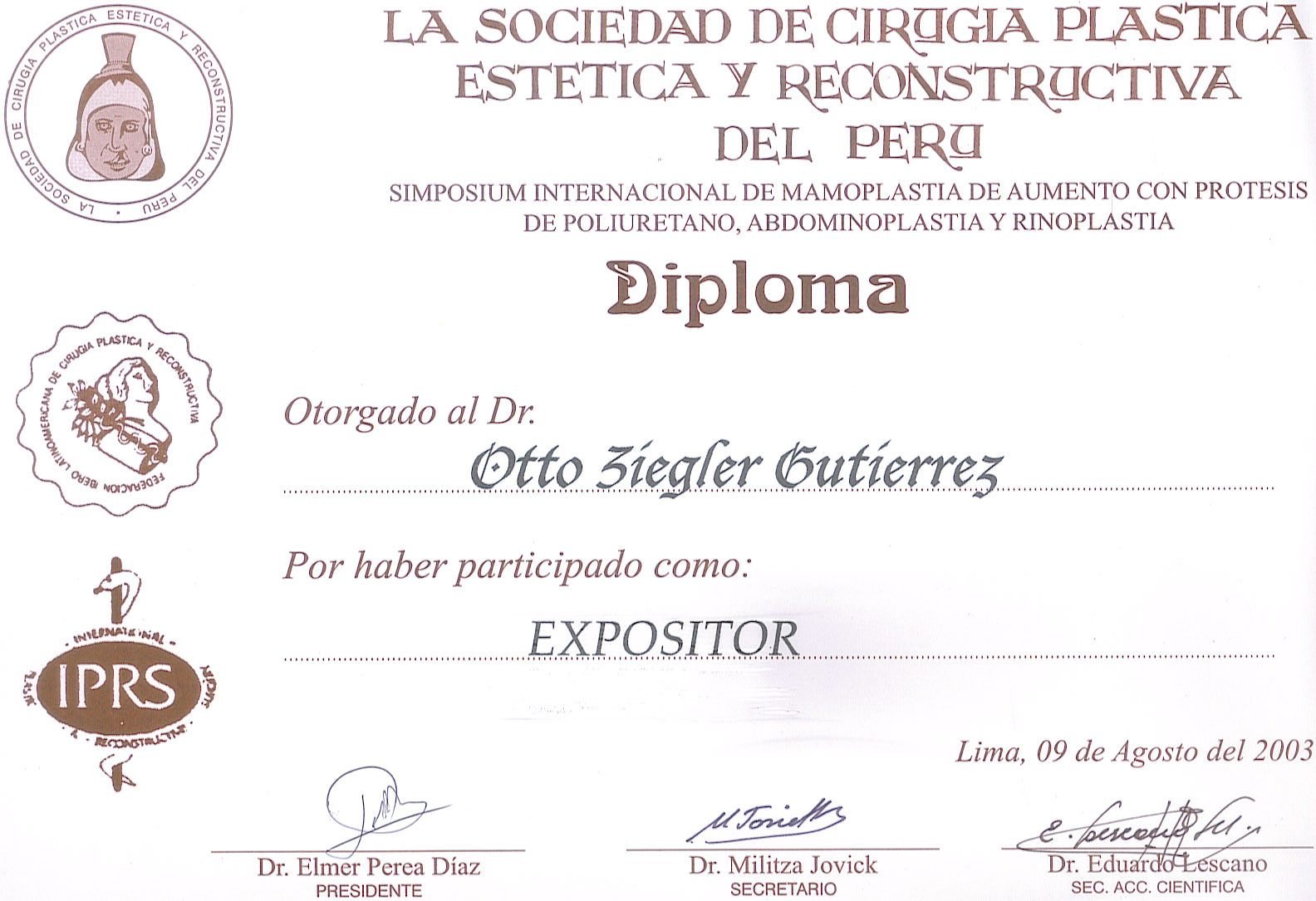 Symposium Internacional de Rinoplastia Diploma Agosto (2003)