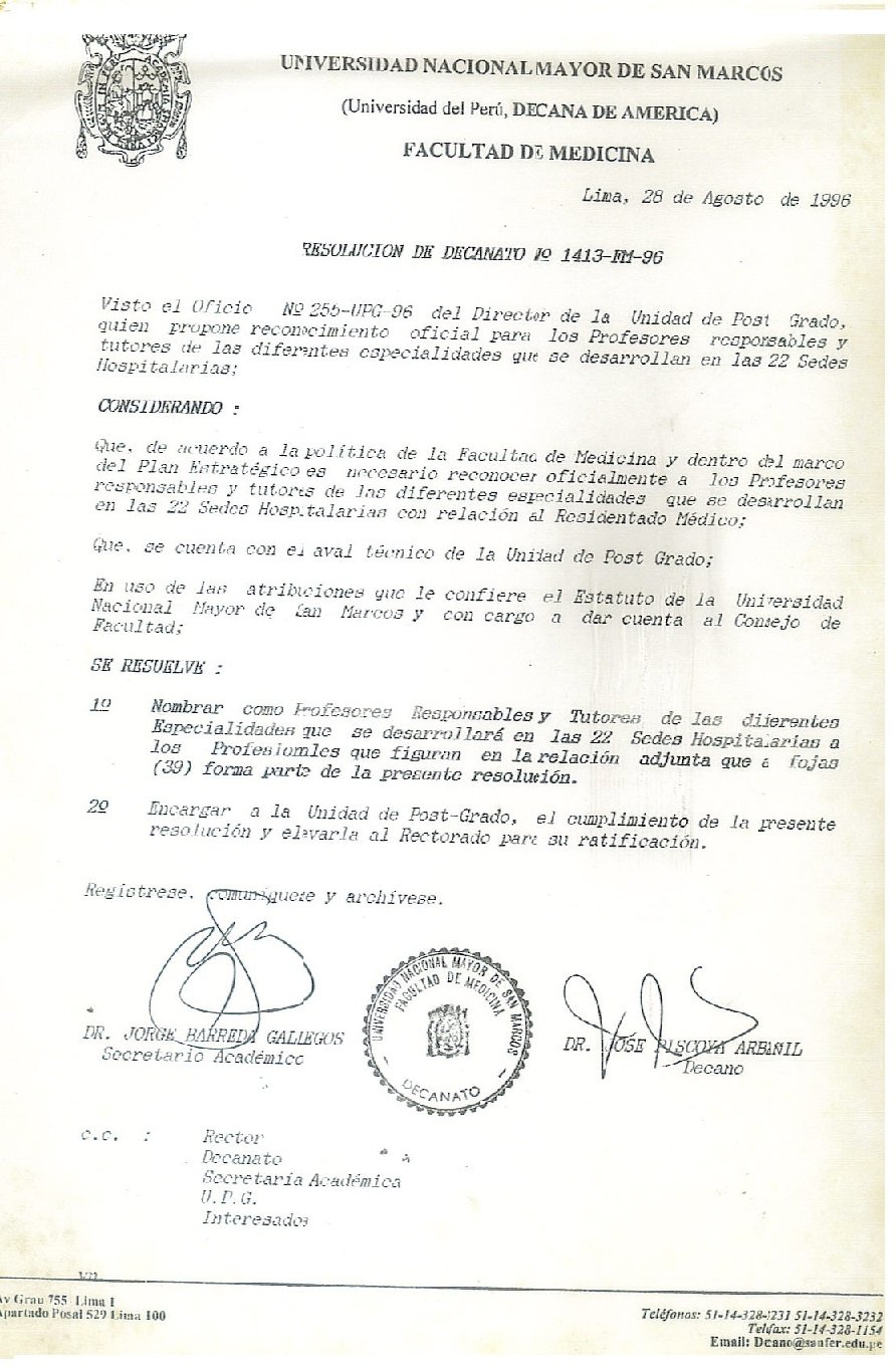 Egresado de la Facultad de Medicina de la Universidad Nacional Mayor de San Marcos (UNMSM)Años: 71 – 81