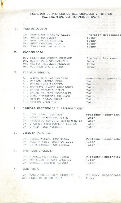 Profesor invitado de Cirugia Plastica UNMSMAños: 89 – 90